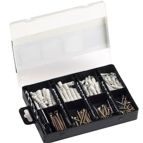 4 brocas de videa para concreto: 5mm, 6 mm, 7 mm, 8 mm 3 pontas parafusadoras de 25 mm: pz 2/2/2 75 parafusos: 25 unidades de 3,5 x 30 20 unidades de 4,0 x 35 20 unidades de 4,0 x 40 10 unidades de 5,0 x 50 90 buchas: 30 unidades de 5 mm 25 unidades de 6 mm 20 unidades de 7 mm 15 unidades de 8 mm 1 suporte universal magnético