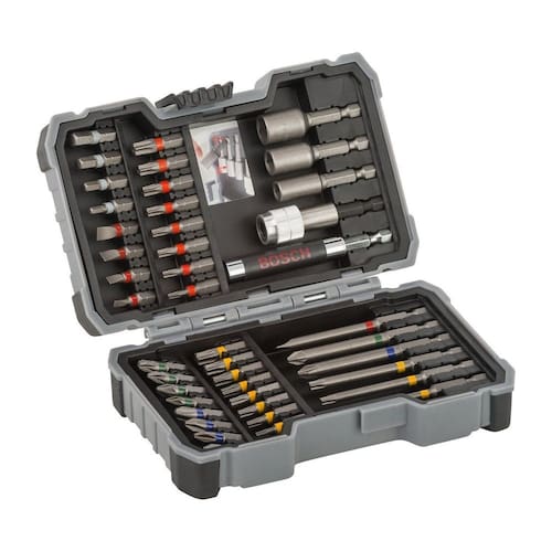 43 peças, incluindo: Pontas Philips (PH), Pontas Pozidriv (PZ), Pontas Torx (T), Pontas Fenda (S)