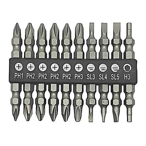 Descricao JOGO 10 BITS PONTEIRA 65MM - BIT-165Os Bits da Western sao ideais para apertar e desapertar parafusos de maneira extremamente agil e precisa, de maneira pratica e simples!Caracteristicas:- Apertar e desapertar parafusos.- Para Furadeira e Parafusadeira.Cuidados:Utilize equipamentos de protecao individual (oculos de protecao, luvas etc...) Necessario ao trabalho.- Use a ferramenta correta para sua aplicacao. Nao force a ferramenta. A ferramenta correta fara o trabalho melhor e mais seguro se utilizada para aquilo que foi projetada.- Use o tipo e tamanho correto de ferramenta para cada tipo de trabalho.- Armazene em local limpo e seco e fresco.- Guarde em local seguro.- Guarde estas instrucoes para futuras consultas.- Manter fora do alcance das criancas.*Imagens meramente ilustrativas.Especificacao Tecnica Dimensoes da Peca: 6,5 x 0,7 x 0,7cm (cada)Dimensoes da Embalagem:12 x 1,4 x 14,5cmQuantidade Inner: 25 PecasDimensoes Inner: 25,5 x 19,5 x 13cmQuantidade Master:100 PecasDimensoes Master:40 x 27 x 29cmMaterial: Cromo vanadioCor: CinzaTipo de Embalagem: BlisterMarca:WesternOrigem: ChinaJogo contendo 10 pontas:3 Fendas: 3mm 4mm 5mm;6 Philips: #1 #2 #3 #2 #2 #2;1 Hex: 3mm.
