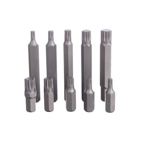 Jogo de bits intercambiáveis multidentado com encaixe de 1/2 polegada. São fabricados em aço resistente, oferecendo durabilidade e ótimo desempenho. Acompanha um estojo para melhor organização das peças e segurança no transporte. Marca: King Tony Características: -pontas multidentadas. -encaixe: 1/2. -fabricado em aço resistente. Conteúdo: -5 Bits 80mm: 12, 10, 8, 6 e 5. -5 Bits 36mm: 12, 10, 8, 6 e 5. -1 Adaptador 1/2 x 10mm. -1 Estojo metálico. Aplicação: Ideal para carros, motocicletas, bicicletas, máquinas e outros. Código: 1011MQ