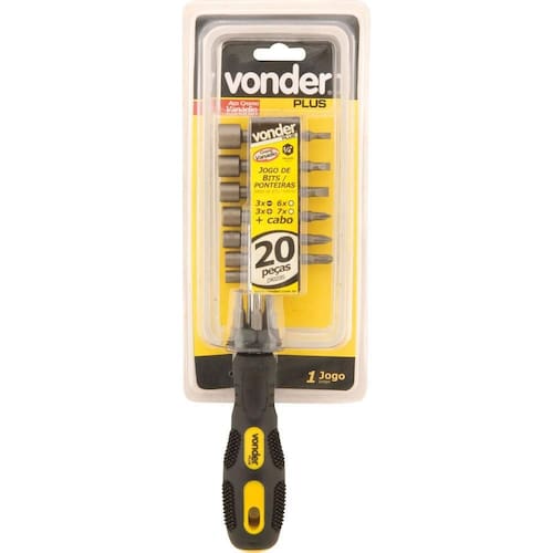 Jogo de Bits Ponteira Cromo Vanádio 20 Peças 1/4” – 35 38 200 000 - VONDER