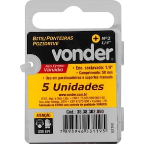 Número da ponta do bits pozidrive: N2 - 1/4