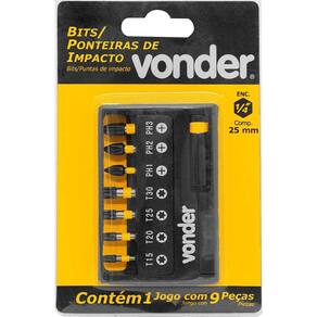 Jogo de bits/ponteiras de impacto S2 com 9 peças encaixe sextavado 1/4" VONDER