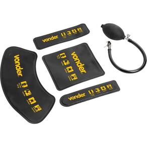 Material da bolsa: PVC | Material da bomba e da mangueira de enchimento: TPU | Material da válvula: Aço inox | Espaço de ajuste: 2 mm a 50 mm | Capacidade máxima de carga: Bolsa 160 mm x 160 mm: 150 kgf / Bolsa 160 mm x 40 mm e 190 mm x 60 mm: 130 kgf / Bolsa 320 mm x 150 mm: 135 kgf | Cor: Preta e amarela | Massa aproximada (peso) (kg): 0,4 kg