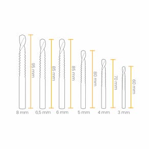 Marca: Charbs Modelo: Brocas de Corte Lateral Material: HSS 4241 (aço de alta velocidade) Revestimento: Titânio Medidas: 3 | 4 | 5 | 6 | 6,5 | 8 mm Uso: Furadeiras 3/8" ou 1/2" Durabilidade: Alta resistência e maior vida útil Indicado para: Madeira, alumínio, placas de plástico e outros materiais Diferencial: Bordas afiadas para cortes mais rápidos e com menos esforço Atenção: Não ultrapassar 20.000 rpm Embalagem: Blister