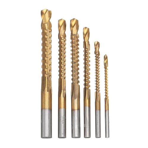 Kit com 6 Brocas de Corte Lateral em Aço com revestimento em Titânio Charbs. Para corte em madeira, alumínio, placas de plástico e etc.