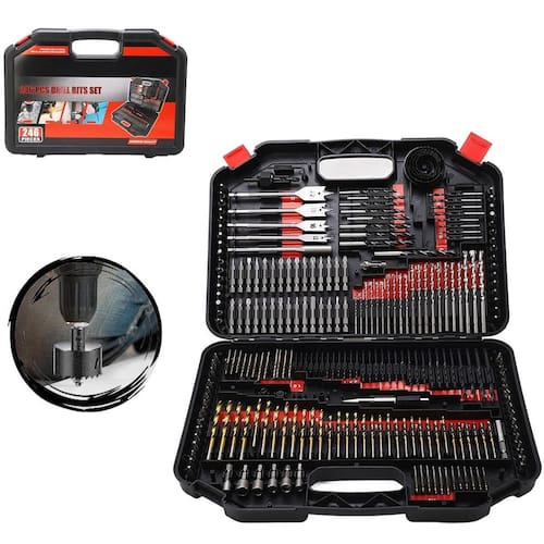 Quantidade: 246pcs lista de pacotes: 4 Brocas spade: 13, 16, 19, 22 mm 17 Brocas brad point: 3,0 4, 4,0 4, 5,0 3, 6,0 2, 7,0, 8,0 2, 10,0 mm