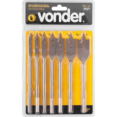 Jogo de Brocas Chatas com 7 Peças de 1/4"" a 1"" - Vonder 5304000141