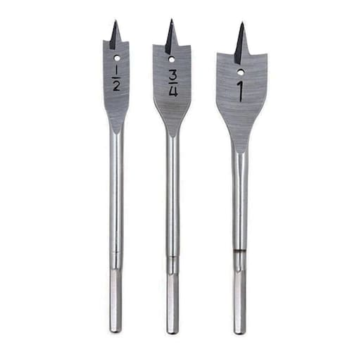 - Marca: Rayco - Modelo: 14564 - Quantidade: 3 peças - Tipo de broca: chata - Feitas de aço de carbono - Possui engate sextavado - Material compacto e resistente - Espessura das brocas: 1/2 ,3/4 e 1 polegadas - Sua geometria permite uma furação precisa - Para lâminas finas de madeira e derivados - Produz um corte mais limpo, rápido e com menor esforço - Peso: 0,15Kg - Garantia: 90 dias