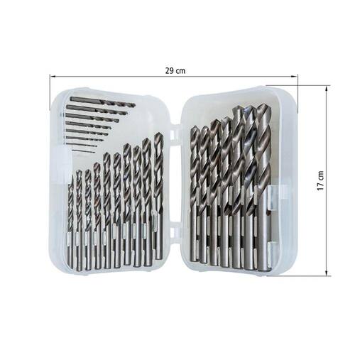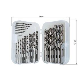 O Jogo de Brocas HSS para Aço Tramontina DIN 338 25 Peças é completo para a perfuração do aço. São 25 peças produzidas em aço rápido HSS. Possuem tamanhos de 1 mm a 13 mm. São brocas que garantem resistência e durabilidade para os trabalhos com aço. Orientações Corpo em aço rápido (HSS). Tempera total no corpo. Corpo polido e envernizado. Ângulo de afiação da ponta de 118º.As ferramentas são submetidas a testes de aplicação prática para garantir sua resistência mecânica em uso intenso.Utilizada em trabalhos de perfuração em aço.As ferramentas são produzidas e testadas conforme normas específicas. Observações Use óculos, luvas e outros equipamentos de proteção de acordo com a tarefa a ser executada. Mantenha ferramentas de corte longe do alcance de crianças. Mantenha o fio de corte protegido, pois ele é afiado e pode ferir o usuário. Armazene em local limpo e seco. Características Gerais EAN13 7891114115697 DUN14 17891114115694 NCM 8207.50.11 Peso Líquido 1,1600 kg. Peso Bruto 1,1600 kg. Metragem 0,001632 m³. Dimensões Embalagem (Compr. X Larg. X Alt.) 170x 160x 60 mm.