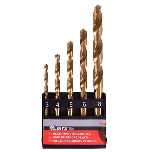 Seja bem vindo a DD Máquinas.Brocas para metal feitas de aço de corte rápido da marca Mtx, com revestimento de nitreto de titânio.Superfície da broca tem dureza aumentada e coeficiente de fricção reduzido,que melhora consideravelmente caraterísticas da ferramenta.Para metais ferrosos e não ferrosos;Acompanha:01 Broca 3mm, 01 Broca 4mm, 01 Broca 5mm, 01 Broca 6mm,01 Broca 8mm e Estojo de Armazenamento.Aqui na Loja DD Máquinas, você pode concluir a sua compra facilmente com toda a segurança e a sua entrega é garantida.Aqui você está em 1º Lugar!*Imagens Meramente Ilustrativas.Todas as Informações divulgadas são de responsabilidade do Fabricante/Fornecedor.Tome cuidado ao manusear e utilizar o aparelho.