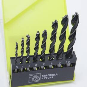 As brocas deste jogo são fabricadas em aço especial, o que as torna ideais para trabalhar com madeira. Com suas 3 pontas, elas produzem furos mais limpos, rápidos e com menor esforço. São adequadas para furar madeiras moles, duras, compensados de pinho, de virola, aglomerados, fórmicas, plásticos e fibras sintéticas.