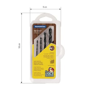 O Jogo de Brocas para Madeira Tramontina 4 Peças vai ser seu melhor companheiro para as tarefas do lar. Projetado para perfurar madeira, o jogo contém quatro peças que auxiliam desde pendurar quadros até construir uma casinha para as crianças. As brocas possuem 4, 5, 6 e 8 mm. Orientações Corpo em aço especial.Têmpera total no corpo.Acabamento fosfatizado.As ferramentas são submetidas a testes de aplicação prática para garantir sua resistência mecânica em uso intenso.Utilizada em trabalhos de perfuração em madeiraAs ferramentas são produzidas e testadas conforme normas específicas.Conteúdo: 4 brocas de 4, 5 6 e 8 mm. Características Gerais EAN13 7891114094084 DUN14 17891114094081 NCM 8207.50.11 Peso Líquido 0,0700 kg. Peso Bruto 0,0800 kg. Metragem 0,000243 m³. Dimensões Embalagem (Compr. X Larg. X Alt.) 180x 90x 15 mm. Dimensões Produto (Compr. X Larg. X Alt.) 170x 78x 10 mm. Observações Use óculos, luvas e outros equipamentos de proteção de acordo com a tarefa a ser executada. Mantenha ferramentas de corte longe do alcance de crianças. Mantenha o fio de corte protegido, pois ele é afiado e pode ferir o usuário. Armazene em local limpo e seco.