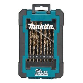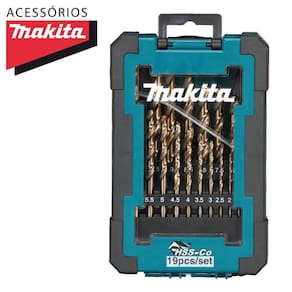 Conjunto de perfuração de metal em Hss-cobalto com 19 unidades (1 a 10mm), Makita D-67561.