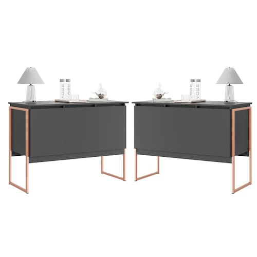 Feitos em MDP Perfex 15mm, bordas em ABS e estrutura em Aço 20x20 pintura epoxi, conta com 3 compartimento internos.