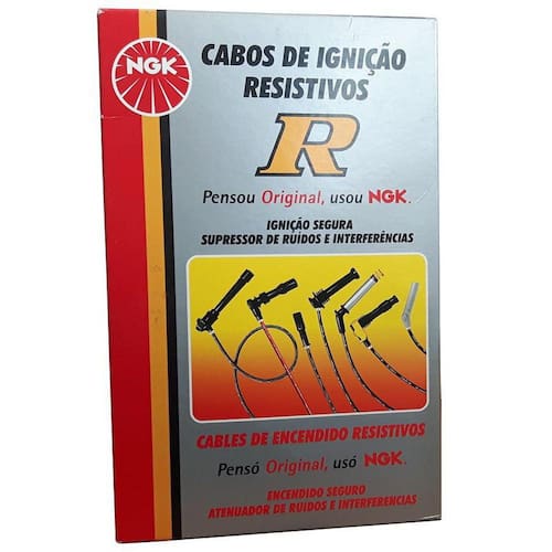 Descrição: Jogo de Cabos de Vela NGK SC-T02 - Os cabos de ignição têm como função conduzir a corrente elétrica do transformador até as velas de ignição distribuindo a corrente na ordem correta de ignição do motor. Esta corrente é de baixa intensidade, porém a tensão elétrica necessária para gerar a centelha na vela é alta entre 20.000 e 30.000 volts.