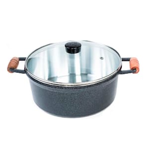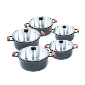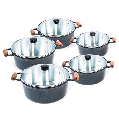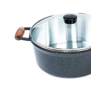 Jogo de Caçarola 5 Peças Grafite Alça Madeira Tampa Vidro Cava