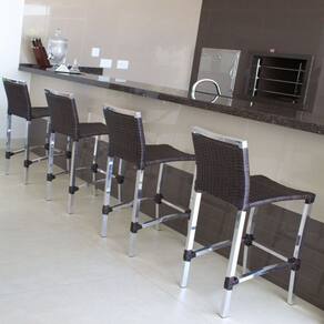 Estrutura em Alumínio: Soldado na solda MIG, de alta resistência, alta durabilidade e garantia de 1 ano de fábrica. Produzida em estrutura de alumínio polido, durabilidade cerca de 8 à 10 anos, material pode ser molhado e utilizado em áreas abertas, exposto a sol e chuva.