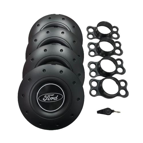 Jogo de Calotas de Centro com suporte inovador de travamento exclusivo que não solta para valorizar a roda original.