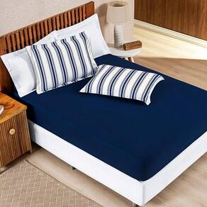 Jogo De Cama 100% Algodão Marin Solteiro 02 Peças - Marinho - Única