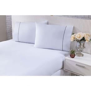 O Jogo de Cama Gran Moratta é confeccionado com tecido Percal 100% Algodão, é Branco e possui um toque de cor em seu detalhe em Vivo.