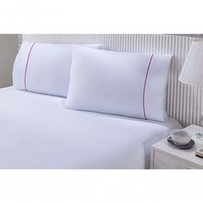 O Jogo de Cama Gran Moratta é confeccionado com tecido Percal 100% Algodão, é Branco e possui um toque de cor em seu detalhe em .