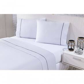 Jogo De Cama 100% Algodão Percal 150 Fios Solteiro Gran Moratta 3 Peças Branco E Cinza - Única