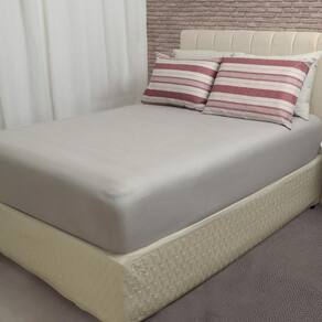 01 Lençol de baixo com elástico para colchão de 1,88 m x 1,38 cm com até 30 cm de altura. 02 Fronhas 70 cm x 50 cm