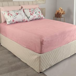 01 Lençol de baixo com elástico para colchão de 1,88 m x 1,38 cm com até 30 cm de altura. 02 Fronhas 70 cm x 50 cm