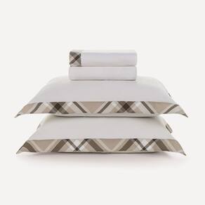 Com formas geométricas em tons neutros e terrosos, o jogo de cama Benjamin traz um ar contemporâneo ao ambiente. As padronagens são compostas por texturas que as enriquecem ainda mais. A pala do sobre lençol e as abas das fronhas são estampadas, destacando o design com equilíbrio. Produzido em 300 fios de algodão egípcio, garante puro conforto, toque sedoso e durabilidade. Uma opção moderna e versátil para composições que buscam identidade e estilo