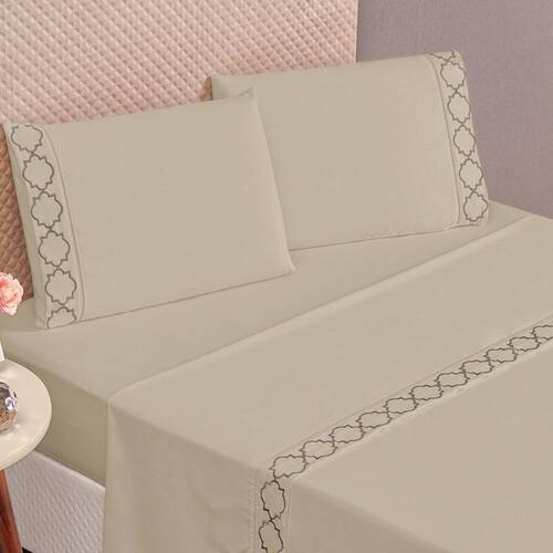 O Jogo de Cama Infinity é a peça chave que falta para você ter um quarto perfeito, confeccionado em tecido Micropercal 300 fios proporciona suavidade, conforto e sofisticação para seu quarto! Tecido Micropercal 300 Fios Lençol de baixo com elástico em toda sua volta. O Que Vai Na Embalagem: 01 Lençol De Cima 2,40m X 2,20m 01 Lençol De Baixo C/ Elástico P/ Colchão De 1,88m X 1,38m X 30cm De Alt. 02 Fronha 70cm X 50cm Composição: Tecido: 100% Poliéster Recomendações gerais para conservação de sua peça: - Lavável em casa, mas verifique a capacidade de sua lavadora. - Temperatura máxima de lavagem 30C, processo de lavagem normal. - Usar sabão em pó e amaciante com moderação. - Cuidado com as misturinhas caseiras, elas podem manchar o produto. - Não usar alvejante. - Não é permitido secagem na máquina. - Não passar a ferro. - Secar em superfície plana. - Secar à sombra - Antes de realizar a lavagem do produto, sugerimos que separe as peças coloridas e claras, para diminuir as chances de sua peça manchar. A cor do produto é exatamente igual a foto? - A cor pode modificar um pouco de aparelho para aparelho, apesar disso não interfere na beleza do produto. Marca: Bia Enxovais | Estampa: Não se Aplica | Medidas: 01 Lençol De Cima 2,40m X 2,20m01 Lençol De Baixo C/ Elástico P/ Colchão De 1,88m X 1,38m X 30cm De Alt.02 Fronha 70cm X 50cm | Número de Peças: 04 Peças | Material: Poliéster | Cor Predominante: Cáqui | Cama Indicada: Casal
