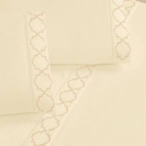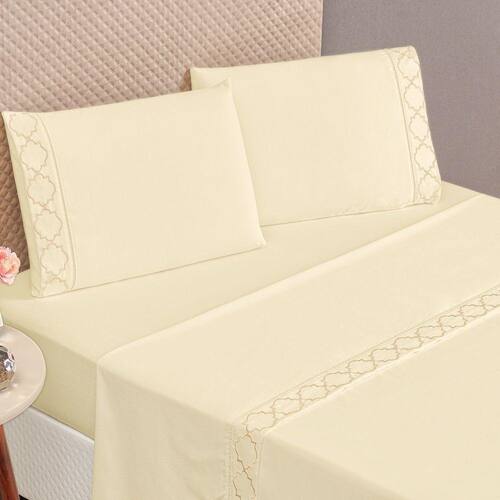 Jogo De Cama 300 Fios Bordado Casal Padrão Infinity 04 Peças - Palha O Jogo de Cama Infinity é a peça chave que falta para você ter um quarto perfeito, confeccionado em tecido Micropercal 300 fios proporciona suavidade, conforto e sofisticação para seu quarto! Tecido Micropercal 300 FiosLençol de baixo com elástico em toda sua volta. O Que Vai Na Embalagem: 01 Lençol De Cima 2,40m X 2,20m01 Lençol De Baixo C/ Elástico P/ Colchão De 1,88m X 1,38m X 30cm De Alt.02 Fronha 70cm X 50cm Composição: Tecido: 100% Poliéster Recomendações gerais para conservação de sua peça: - Lavável em casa, mas verifique a capacidade de sua lavadora.- Temperatura máxima de lavagem 30C, processo de lavagem normal.- Usar sabão em pó e amaciante com moderação.- Cuidado com as misturinhas caseiras, elas podem manchar o produto.- Não usar alvejante.- Não é permitido secagem na máquina.- Não passar a ferro.- Secar em superfície plana.- Secar à sombra- Antes de realizar a lavagem do produto, sugerimos que separe as peças coloridas e claras, para diminuir as chances de sua peça manchar. A cor do produto é exatamente igual a foto? - A cor pode modificar um pouco de aparelho para aparelho, apesar disso não interfere na beleza do produto. Ean: 7908125117944