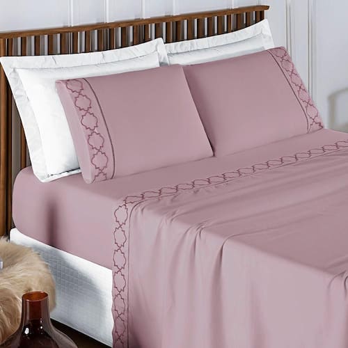 Jogo De Cama 300 Fios Bordado King Infinity 04 Peças - Frapê De Uva O Jogo de Cama Infinity é a peça chave que falta para você ter um quarto perfeito, confeccionado em tecido Micropercal 300 fios proporciona suavidade, conforto e sofisticação para seu quarto! Tecido Micropercal 300 FiosLençol de baixo com elástico em toda sua volta. O Que Vai Na Embalagem: 01 Lençol De Cima 2,48m X 2,40m01 Lençol De Baixo C/ Elástico P/ Colchão De 1,93m X 2,03m X 40cm De Alt.02 Fronha 70cm X 50cm Composição: Tecido: 100% Poliéster Recomendações gerais para conservação de sua peça: - Lavável em casa, mas verifique a capacidade de sua lavadora.- Temperatura máxima de lavagem 30C, processo de lavagem normal.- Usar sabão em pó e amaciante com moderação.- Cuidado com as misturinhas caseiras, elas podem manchar o produto.- Não usar alvejante.- Não é permitido secagem na máquina.- Não passar a ferro.- Secar em superfície plana.- Secar à sombra- Antes de realizar a lavagem do produto, sugerimos que separe as peças coloridas e claras, para diminuir as chances de sua peça manchar. A cor do produto é exatamente igual a foto? - A cor pode modificar um pouco de aparelho para aparelho, apesar disso não interfere na beleza do produto.