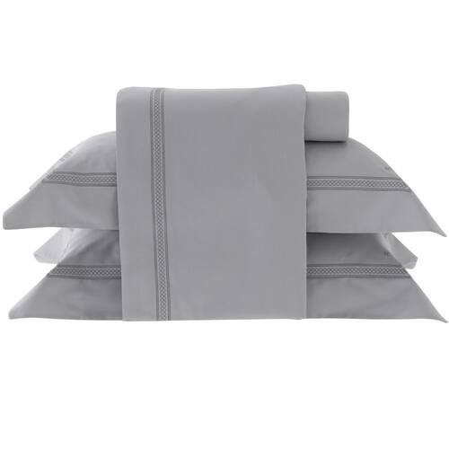 Os lençóis e fronhas da coleção Bordado da Linha K da Kacyumara são produzidos em tecido acetinado 100% algodão egípcio, com percal 300 fios.