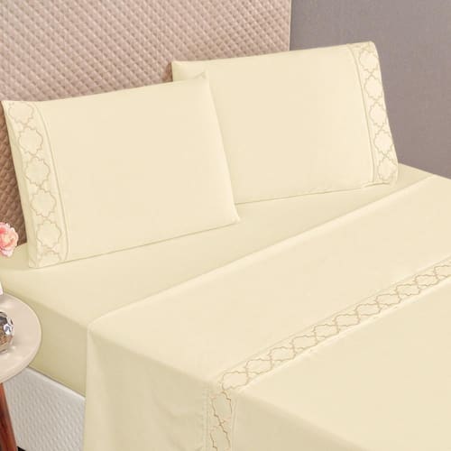 O Jogo de Cama Infinity é a peça chave que falta para você ter um quarto perfeito, confeccionado em tecido Micropercal 300 fios proporciona suavidade, conforto e sofisticação para seu quarto! Tecido Micropercal 300 Fios Lençol de baixo com elástico em toda sua volta. O Que Vai Na Embalagem: 01 Lençol De Cima 2,40m X 2,40m 01 Lençol De Baixo C/ Elástico P/ Colchão De 1,98m X 1,58m X 30cm De Alt. 02 Fronha 70cm X 50cm Composição: Tecido: 100% Poliéster Recomendações gerais para conservação de sua peça: - Lavável em casa, mas verifique a capacidade de sua lavadora. - Temperatura máxima de lavagem 30C, processo de lavagem normal. - Usar sabão em pó e amaciante com moderação. - Cuidado com as misturinhas caseiras, elas podem manchar o produto. - Não usar alvejante. - Não é permitido secagem na máquina. - Não passar a ferro. - Secar em superfície plana. - Secar à sombra - Antes de realizar a lavagem do produto, sugerimos que separe as peças coloridas e claras, para diminuir as chances de sua peça manchar. A cor do produto é exatamente igual a foto? - A cor pode modificar um pouco de aparelho para aparelho, apesar disso não interfere na beleza do produto. Marca: Bia Enxovais | Estampa: Não se Aplica | Medidas: 01 Lençol De Cima 2,40m X 2,40m01 Lençol De Baixo C/ Elástico P/ Colchão De 1,98m X 1,58m X 30cm De Alt.02 Fronha 70cm X 50cm | Número de Peças: 04 Peças | Material: Poliéster | Cor Predominante: Palha | Cama Indicada: Queen