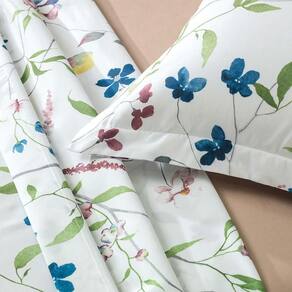 A estampa Amelie traz conforto e sofisticação para seu quarto com edredom, jogo de colcha e jogo de cama em um desenho floral delicado e moderno. O design apresenta ramos finos e sinuosos com folhas verdes, acompanhados de flores em tons vibrantes de azul, bordô e toques suaves de rosa e amarelo sobre um fundo branco elegante. A composição transmite leveza e um toque artístico, perfeito para um ambiente sofisticado e acolhedor.