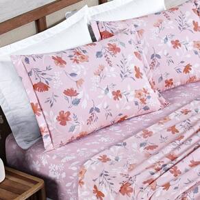 Jogo De Cama Afeto 400 Fios Queen 04 Peças 100% Poliéster - Flora - Blush