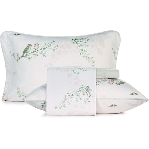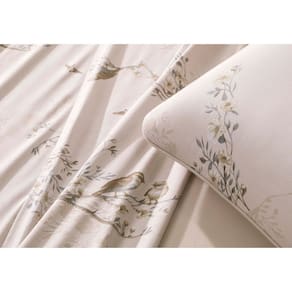 -O jogo de cama deve ser lavado à máquina com temperatura máxima de 40°C, em um ciclo suave. Não deve ser utilizado alvejante ou produtos à base de cloro. Para secar, pode ser colocado na secadora em temperatura baixa. Se necessário, pode ser passado a ferro em temperatura baixa, até no máximo 110°C. Não é indicado realizar lavagem a seco.