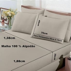 Conteúdo e Medidas: Jogo de Cama Simples - Casal - 03 Peças 01 - Lençol Malha com Elástico Liso(1,38m x 1,88cm x 0,30cm) 02 - Fronha Malha Lisa(0,45cm x 0,70cm) Veste travesseiro (50cm x 70cm)