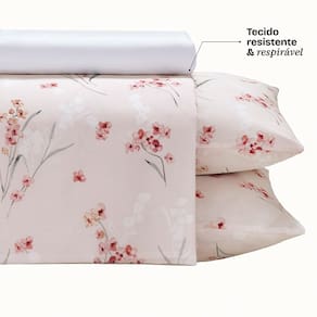 Feito em 100% algodao, este jogo oferece leveza, qualidade e uma suavidade natural ao toque, ideal para quem valoriza conforto e bem-estar no dia a dia. O algodao e resistente, permite melhor circulacao de ar e ajuda a manter a temperatura agradavel durante o sono, tornando as noites mais frescas e aconchegantes.