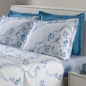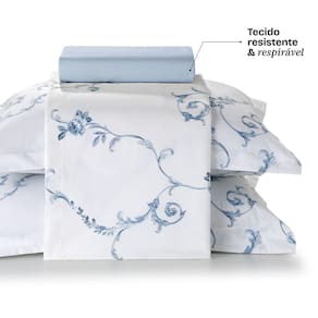 Jogo de Cama Casal 100% Algodao Percal 180 Fios Uni Dohler Kit 4 Pecas - Branco | Azul