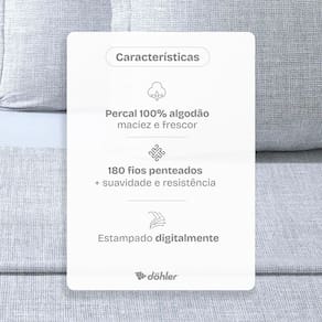 Transforme seu quarto com o Jogo de Cama Casal Uni Dohler. Desenvolvido para quem valoriza o toque macio do percal 100% algodao e a durabilidade dos 180 fios penteados. Serve perfeitamente em colchoes de ate 35 cm de altura e acompanha 4 pecas.