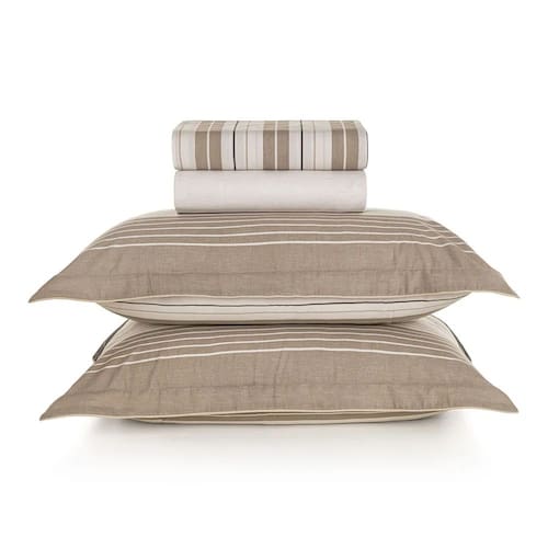 Embalagem: 1 lençol, 1 lençol com elástico e 2 fronhas