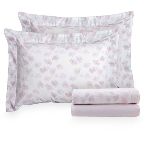Os lençóis da coleção exclusiva Vintage de Vida Bela Kacyumara são confeccionados sobre a base exuberante do tecido de algodão egípcio com propriedades anti-pilling, naturalmente hipoalergênico e toque suavemente macio. O diferencial principal aqui são as estampas que remontam aos clássicos das eras de ouro: poás, quadros, estrelas e corações, as disposições e cores são as mais diversas e atendem ao variados públicos e perfis. Loves esbanja toda sua graça nesse romântico padrão em coração, seu ton sur ton em rose traz uma leitura apaixonante ao ambiente. Os jogos de cama 4 peças da linha consiste em lençol de cima dobra feita com aplicação de pala dupla e viés, lençol de elástico coordenado com lençol de cima e fronhas 3 abas e aplicação de rolotê. Perfeito para vestir sua cama! Foto meramente ilustrativa.