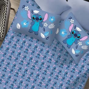 Jogo de Cama Casal 3 Pçs Stitch Disney 70% Algodão 30% Poliéster Stitch Blue -
