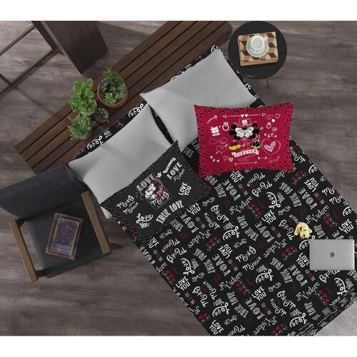 Jogo de Cama Casal 3 peças Disney Jadore Preto/Vermelho de Malha 100% Algodão
