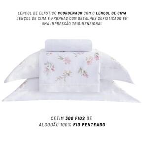 Contém: 04 Peças 01 Lençol de cima com vira Casal 2,20x2,75m 01 Lençol de baixo Casal com Elástico 1,40x1,90m com 35cm de altura 02 Fronhas 0,50x0,70m Estampa: Flora