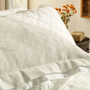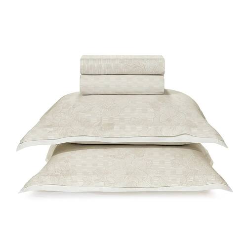 O conjunto de cama Clarissa se trata de mergulhar em um oceano de conforto e elegância. Fabricado com algodão egípcio de alta qualidade e com uma contagem de 300 fios, sua suavidade excepcional é ideal para aprimorar suas noites de sono. Com um fundo branco e uma estampa delicada de flores com suaves listras, este conjunto é adornado por detalhes sutis que não apenas proporcionam um visual encantador e moderno, mas também elevam a estética do ambiente. Este produto é construído por cores calmantes, que refletem nossas águas e nos conectam a um estado de purificação e equilíbrio profundo.