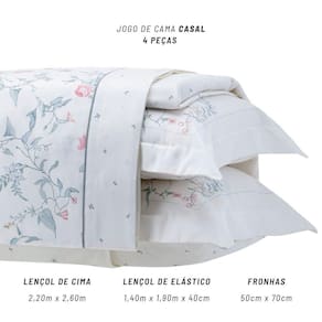 Contém: 04 Peças 01 Lençol de cima com vira Casal 2,20x2,60m 01 Lençol de baixo Casal com Elástico 1,40x1,90m com 40cm de altura 02 Fronhas 0,50x0,70m Estampa: Siera