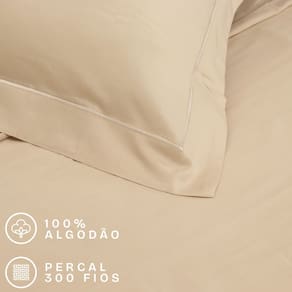 Jogo de Cama Casal 300 Fios Percal 100% Algodão com Bordado 4 Peças BF Colchões - Bege